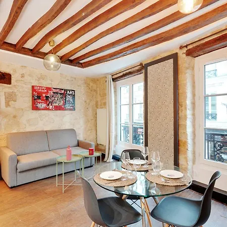 De accommodatie beschikt over zelfvoorzienende faciliteiten, zoals een complete keuken met een magnetron, een waterkoker en een koelkast. Gasten zullen genieten van Europese keuken van Breizh Cafe Le Marais, gelegen op 150 meter ervandaan. Rambuteau metrostation, die een toegang tot de rest van Parijs geeft, is op loopafstand van nog geen 10 minuten ervandaan.